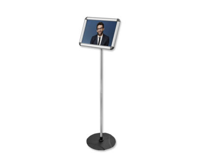 Egy elegáns és könnyű, mégis nagyon stabil állvány, állítható keretszöggel. A termék kiválóan alkalmas információk bemutatására vagy éttermi menük megjelenítésére. Az acél alap garantálja a termék magas minőségét. A habszivacs lábak megvédik a padlófelületet a karcolásoktól. A grafikák cseréje a nyomat helyére pattintásával történik a keret szárnyainak segítségével, ami szó szerint másodperceket vesz igénybe. Az összecsukott állapotban kis méret megkönnyíti a teljes termék szállítását és tárolását. A TERMÉK ELŐNYEI: