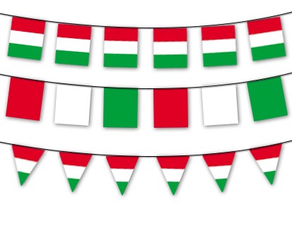 Kiváló reklám, vagy dekoráció eszköz. A zászlók hőollóval háromszög alakúra vannak vágva, két méterenként 5 db zászló kerül a szalagra. A zászlók 20 cm térközzel kerülnek felvarrásra.