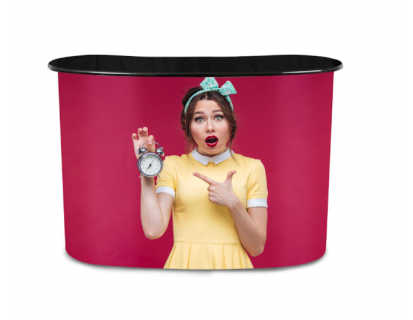 Könnyen összeállítható, keretse rendszerű kínáló pult. Az összeszerelés vagy a kibontás mindössze két percet vesz igénybe. A nyomatatott grafika mágnes csíkkal rögzül az állványhoz. Popup anyag nyomat. Könyöklőt tartalmaz