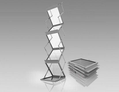 Prospektus állványaink, A/4es méretű prospektusok különböző eseményeken való kiállítására szolgálnak. Felállításuk egyszerű, szállításuk kis helyigényű, mivel összecsukhatóak.