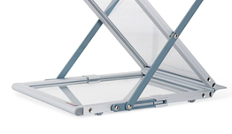 Az állvány 5 db A/4es tartóból áll. Harmonikaszerűen hajtható össze, így kevés helyet foglal.