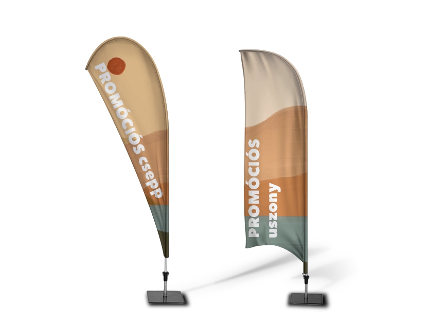 A strandzászló (beach flag, bow flag) nagyméretű reklámfelületet és figyelemfelkeltő megjelenést biztosít cége, üzlete számára. Előszeretettel használják kiállításokon, vásárokon, fesztiválokon, sportrendezvényeken és más eseményeken reklám, promóció céljából. A beachflag anyaga hurkolt poliészter, kíméletesen mosható. A rúd több tagból összeilleszthető zászlórúd. A zászló nyomat két oldalas, a hátoldalán tükörképben látható a minta 85-90%-os színtelítettségben.